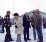 People involved with deer and elk volunteer feeding program, By Brinton interviewing (2 photos). Second photo has Stuart and Duane Sullivan on left, By Brinton in the middle, and Dan Sullivan on right. |