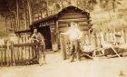 Two men at gate to Pine Creek Mine Cabin, 1906 ONe of the men is Ron Bowers father |