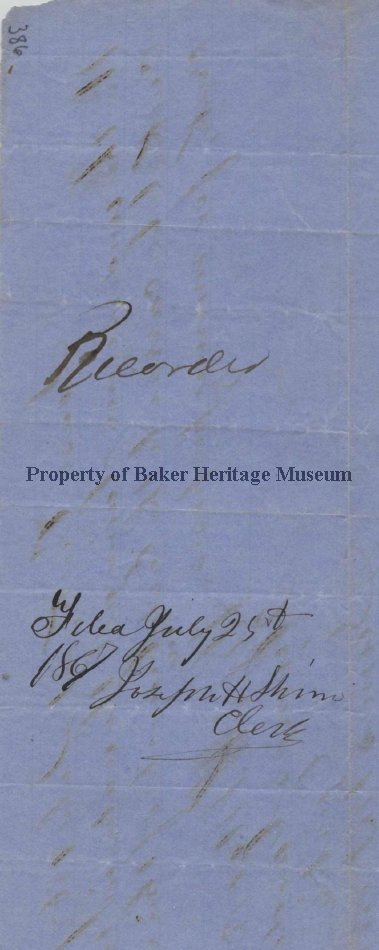Hex K Moore, Thomas Carden, Curtis, and James M Rowland water right claim for Louse Creek for mining purposes. July 21st, 1867. Filed July 25th, 1867 by Joseph H Shinn, Clerk.