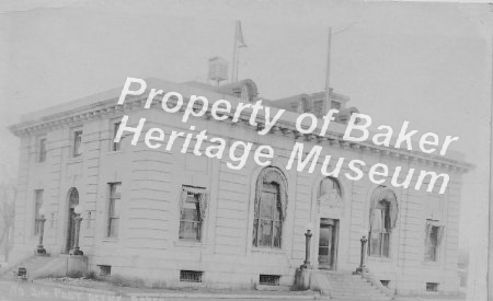 4 postcards of Baker City buildings, Post Office, City Hall, North Baker School and Main St. businesses. ca 1913. Donated by Blair A. Holman, 61223 Diamond Drive, Coos Bay, Or, 97420.