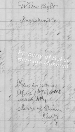 Isaac Hiatt, J Boyd, JW Ruby, JH Ingraham, H Phaffer claim 700" of water in ditch off of Rock Creek for mining purposes. October 4th, 1868. Filed April 17th, 1869 by JH Shinn, Clerk.