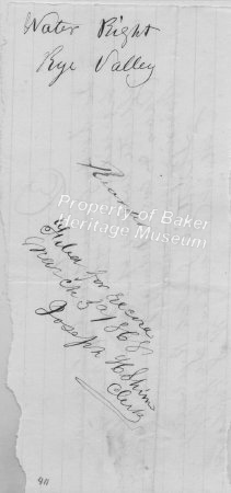 WS Pritchard claims water rights of Shirtail Gulch in Rye Valley District for mining purposes. December 22nd, 1867. Filed March 3rd, 1868,by JH Shinn.