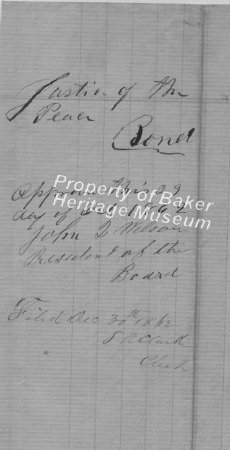 Justice of the Peace Bond for Auburn Precinct for Sidney Abell. $1000 surity by Abell, WH Johnson and JH Williams, October 29th, 1862. Witnessed by same. Approved by John Q Wilson, President of the Board. Filed December 30th, 1862 by SA Clarke, Clerk.