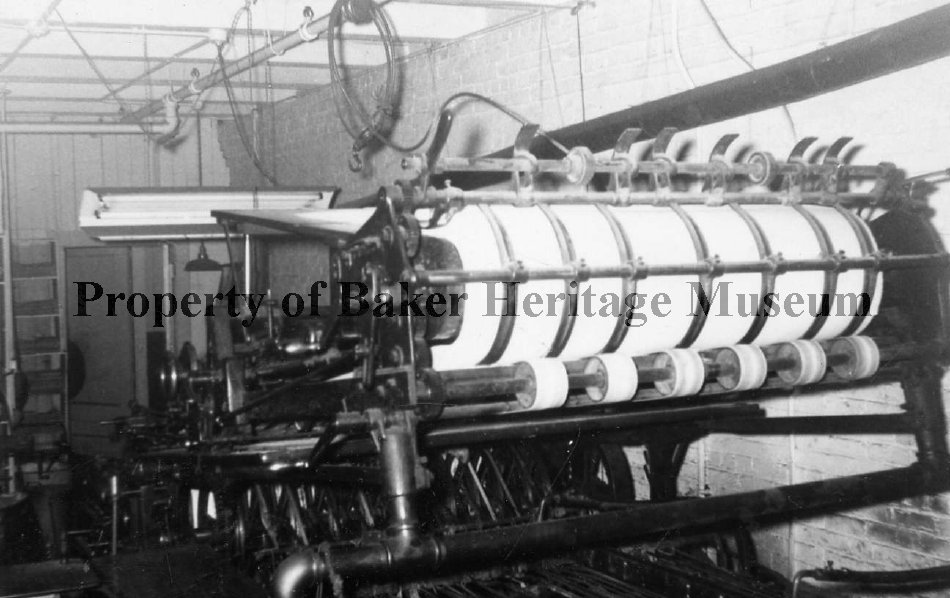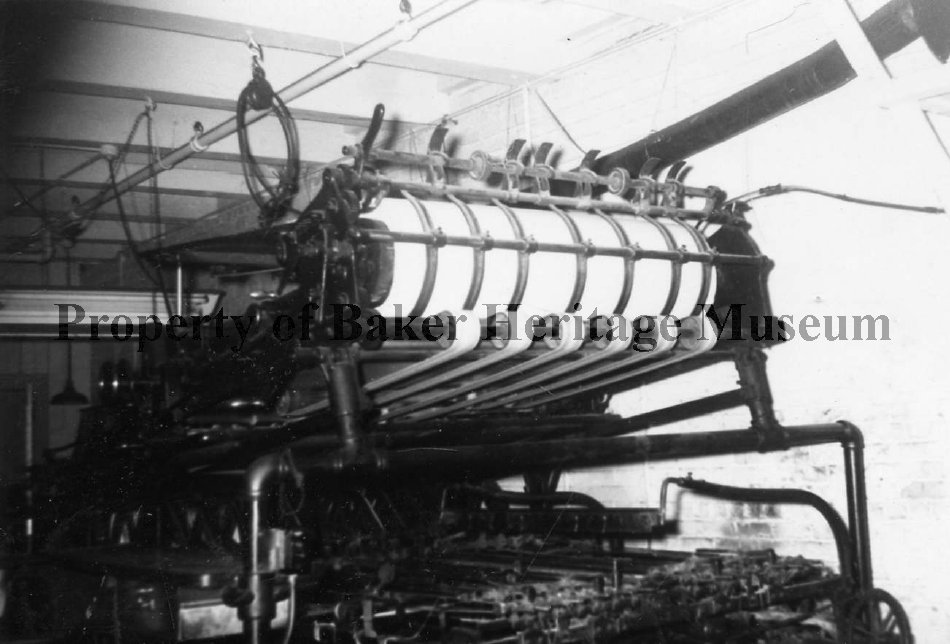 Black and White photos taken in April of 1959. Seven different views of newspaper printing press.