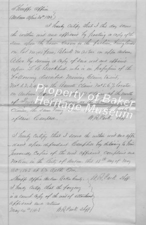 Writ of attachment for the property of John Campbell, for a debt of $293.00, without interest and costs of suit. April 29th, 1863. S. A. Clarke, clerk W. R. Park Sheriff. Writ accomplished May 14, 1863.