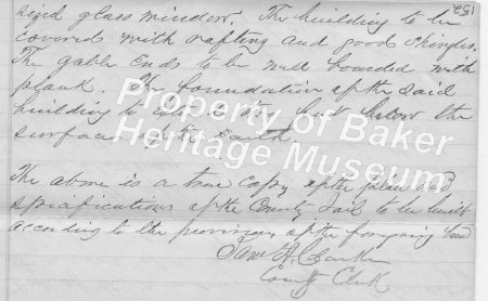 Auburn jail 1862 contract and plans, for H. D. Rippeto, David Doud, Edwin Barstow, E. P. Bower. Signed by Same A. Clarke, County Clerk. Includes log dimensions, double walls with two feet space between, interiorsixteen feet square, with the distance between the upper and lower floors ten feet, grated windows, etc. The upper story room was for jailer's use.