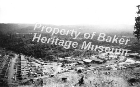 Series of photos of Bates, involving the Haskell family. Charles Haskell, Rose Haskell (Bates Postmaster), Walter Haskell (Mill Supervisor), BeaJean and Kim Haskell (children). Bates Mill and Log Pond, ca. 1949 with logging truck accident. Other pictures of the houses with the raised boardwalks and dropped yards, ca. 1955, with children playing or posing with Rose Haskell. BeaJean Haskell donated the photos.