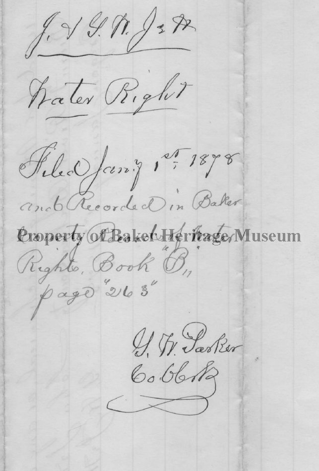 G. W. Jett water rights filed Jan. 1, 1878 for Dixie Creek for "mining mechanical or any other purposes." Carraboo bar. John Jett, G. W. Jett. G. W. Parker, county clerk
