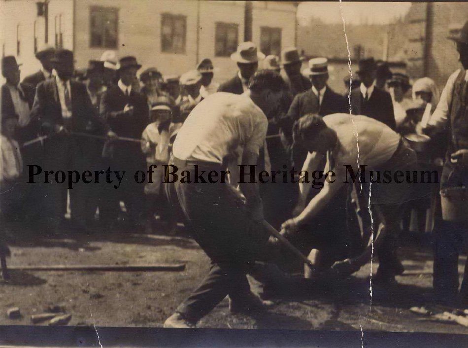 North Pole Mill, Sumpter, OR ; Columbia Mine near Sumpter ; the Sumpter miners (2 men) ; Machine crew breaking out rivets of dredge bucket (4 photos)