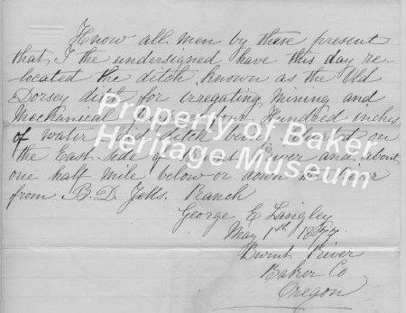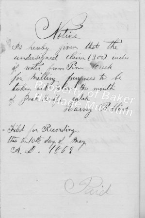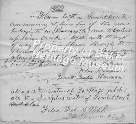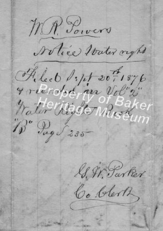 - Water rights filed Nov. 16, 1877, by G. W. Parker, county clerk, and recorded in Baker County record of water rights, Book B, V. 2, Page 259. John G. Hibbard filing for Masters Creek.... View Full Record