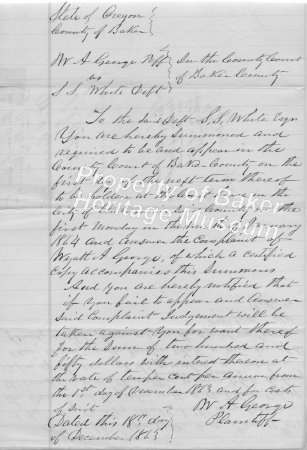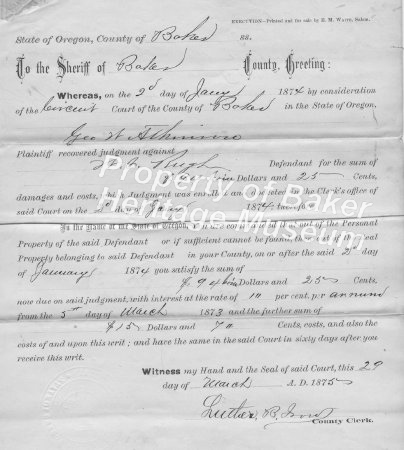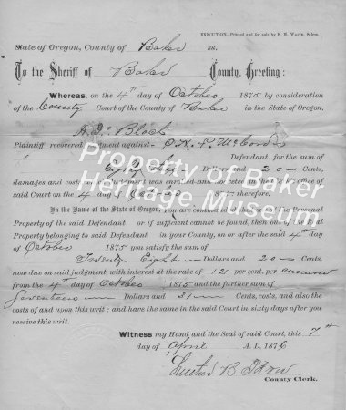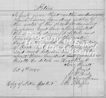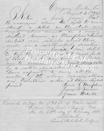 - Sheriff's sale by Sheppherd, J.M. July 13, 1876. Water ditch, water rights of Speake and Co. Sheriff J. M. Boyd, and D. L. Moomaw, deputy. R. C. George, sherrif, Baker Co.... View Full Record