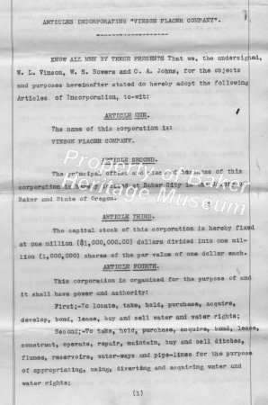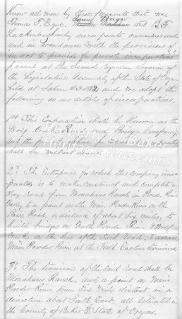 - Malheur and Owyhee Bridge & Ferry Articles of incorporation