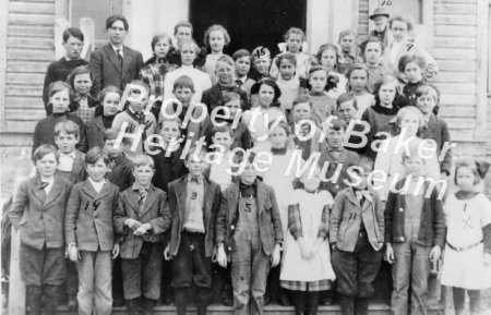 Picture 2) First row L to R Gerlrude Evans, Goldie Phillips, Margeret Gieldings, Elhil Davenport, Perey Wallace, Mary Dunn, Valetta Knapp, Lena Taliterd, Warren Lemon. 2nd row Opal Wood, Helen Tahor, Sarah Miller, Rella Reilly, Eslher Harris, Grace Allen,Lucile Ball. 3rd row Molly Wallace, Erma Davenport, Minnie Davenport, Grace Chappel, Mary Allen, Ira Jellison, Joe Ashby, Bertha Houser, Elwood Denny (above her). 4th row Wallace Jeffison, Ray McDeritt, Claud Davenport, Walter Brodie, Merton Dickinson, Orlin Ireland (above) Teachers: Phoebe Irwin, Lon Swift Caretaker Mr. Dickison 85.68.021