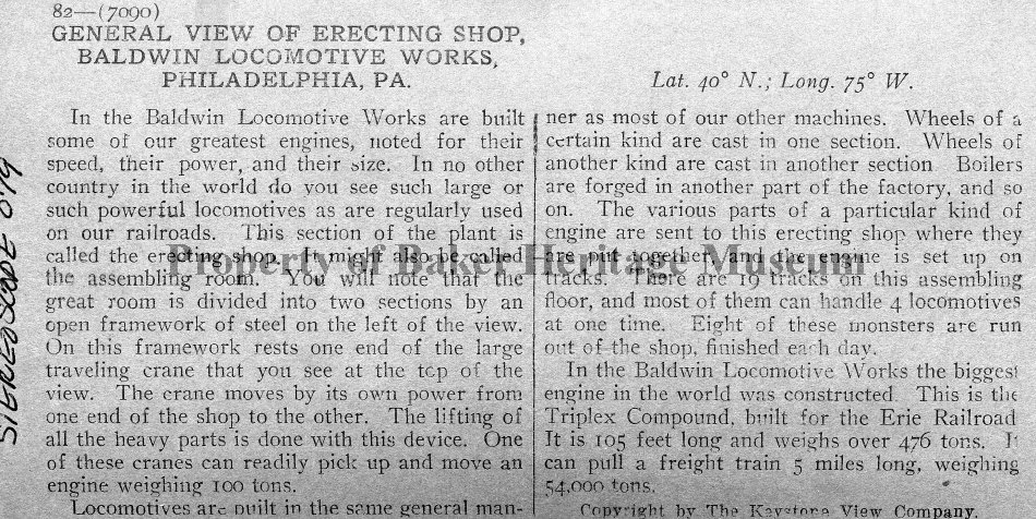 Baldwin Locomotive works, Philadelphia, PA des.
