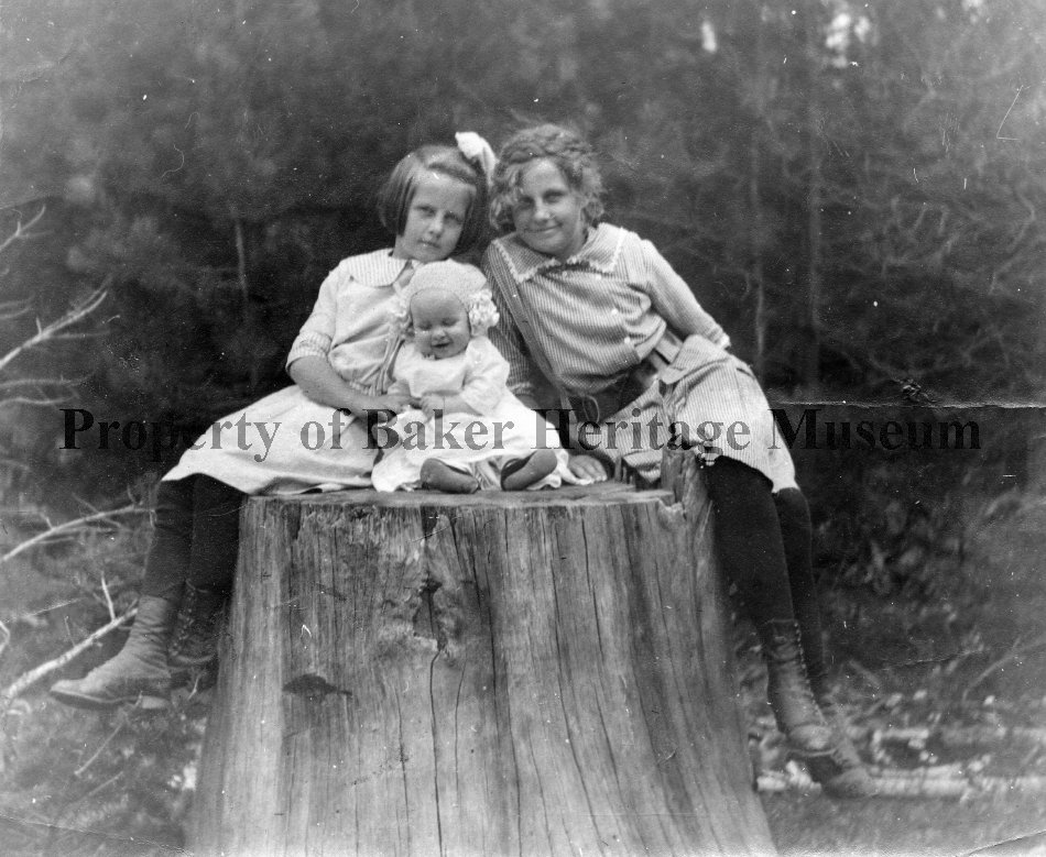 3 girls on log. Photo from Jesse Smurthwaite papers.
