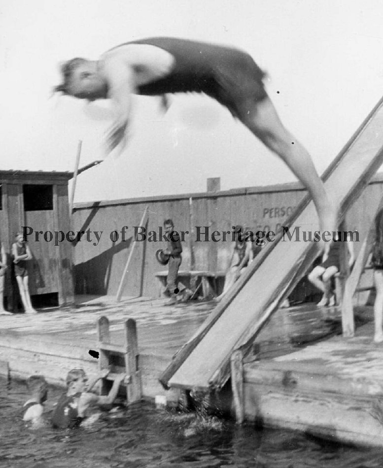 1—3 Black and White photos of Don Sheppard diving off edge in Old Sam—O Springs swimming pool.