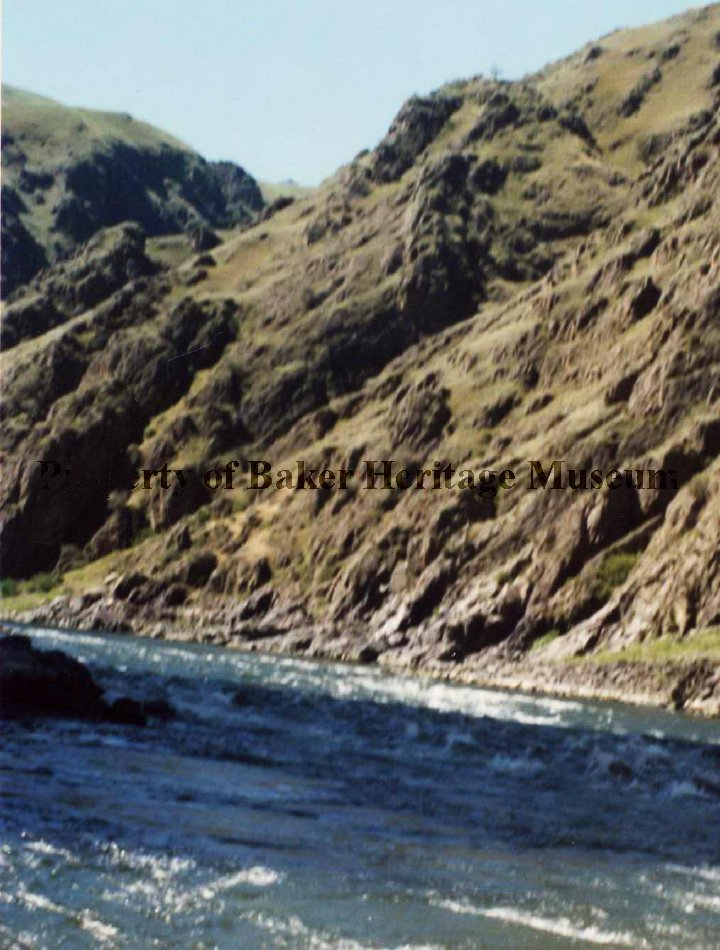 Color photo of Hells Canyon geology at river level——photo taken from a boat.