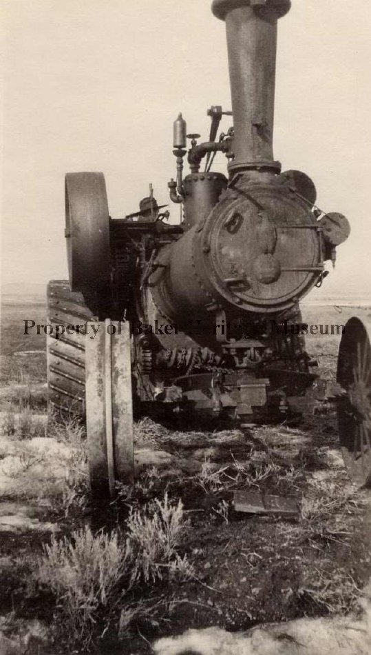8 black and white pictures of various agricultural machinery. 7 are types of tractors, one is of a pipe pouring water into a large barrel.