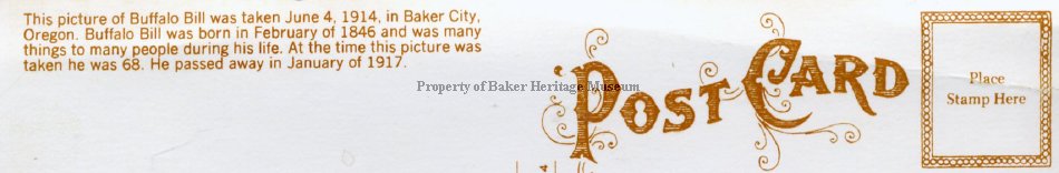 Postcards(2). Buffalo Bill in Baker City(1914); Basche—Sage Hardware Co. Ad(1912).
