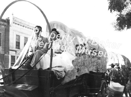 - Photograph, Peggi Timm and Dick Hindman standing in front of a log with a banner that reads "Oregon Jaycees Log to Louisville, Kentucky, Sponsored by the Springfield, Ore. Jaycees '3 Bedroom Home in the Rough.'" A banner below reads "Let Freedom Ring... View Full Record