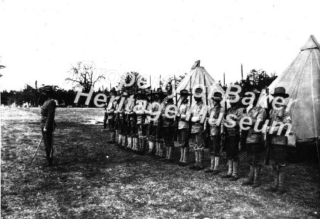 World War I soldiers at camp. 10 photos a—j. Cardboard backing. Accession numbers 87.54.02—11.