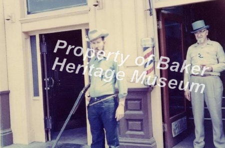 7 photos of historic reenactments for Oregon Centennial 1959 celebration. Downtown Baker City.