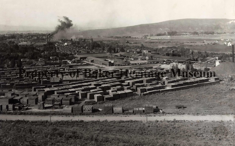 South Baker Oregon Lumber Mill, lumber stacks, and mill yard.
