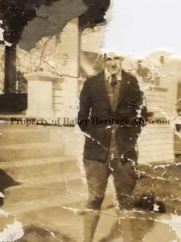 Man in knickers (Mae's Boy— Hobart ?); Two men in mountains, Man in boxing costume and pose outside gym; man dressed in white with an infant child (4 snapshots)