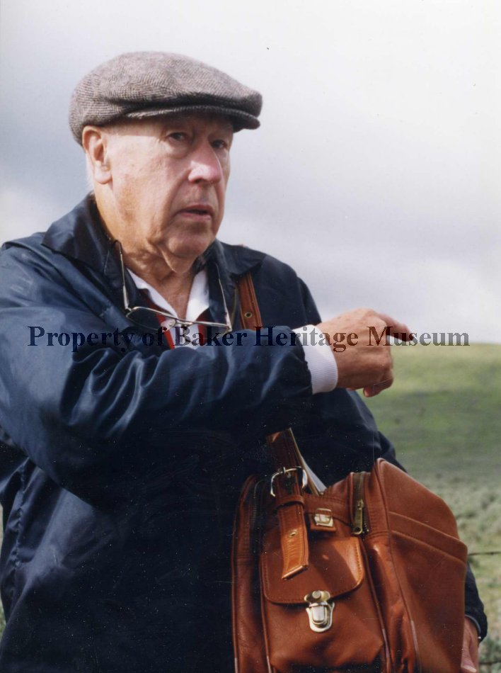 Color picture of James R. Evans at flagstaff Hill Oregon Trail Crossing. 5—8—93