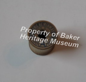 Spool for holding thread; wood; "Carlson Currier Shade 253 Made in USA" onn one end impressed into the wood; "Belding Heminway Co. Pure Silk A 100yds" on other end.