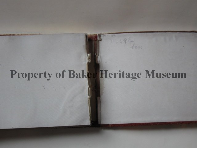 The autograph album has a hard metal or plastic white front cover and reads:"Galaxy Album". The front is decorated with a bouquet of flowers and wheat. Garlands of flowers make up the A in Album and the G in Galaxy, that extends to underline alaxy & lbum. There are two butterflies one orange and one blue. The album has a red velvet edges and binding. The back has is plain white metal or plastic, same as front cover. Inside the pages are of textured paper with gold edges. The title page is blue paper and reads: "Galaxy Album specially adapted for autographs and sketches" with an illustrated pheniox & cherry blossoms with similar illustrated pages throughout. Many inscriptions.