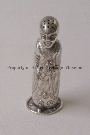 Shaker, salt or pepper, Chengtu (Chengdu) silver, Chinese figure in decorative robe.