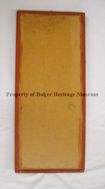 Glass—topped wood—frame case displaying 55 Native American items and one Mexican item collected and mounted by F. Kevin Laughlin. Pencil writing on back reads, "56 pieces 1963 F.K. Laughlin".