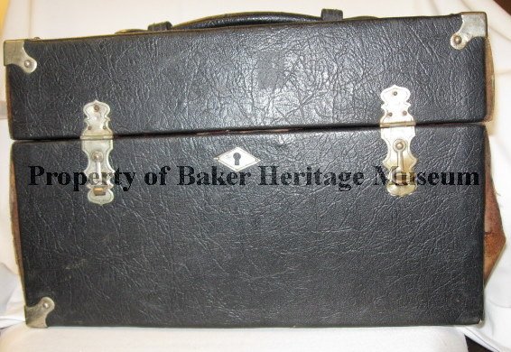 Cornet case for cornet given to L.E. Freitag Oct. 23(8?), 1904. Freitag was Baker City Band leader in early 1900's.