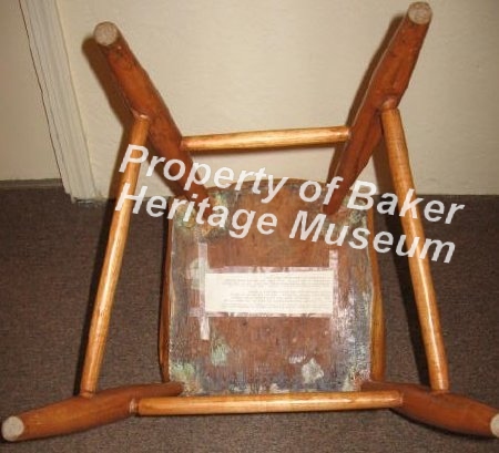 2 wood side chairs made by George Strickler, cabinet maker. The finish is not original. They had been painted green, then orange before being stripped and refinished.