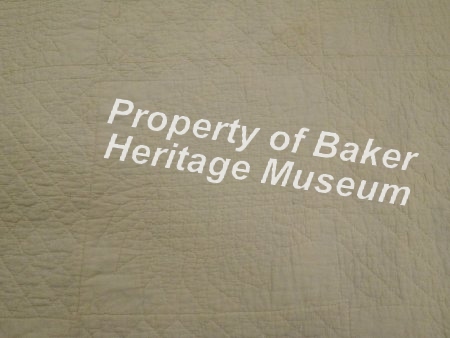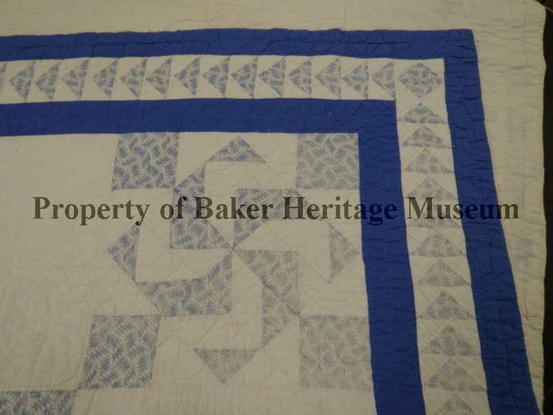 Quilt made by Blanche Murphy's mother when she was 12 years old. Blue and white print, crazy ann pattern.