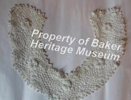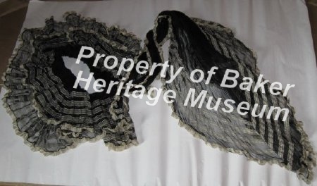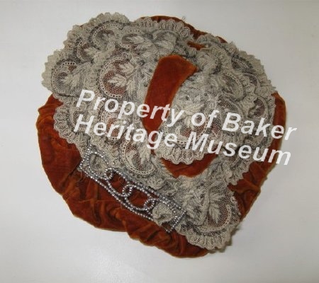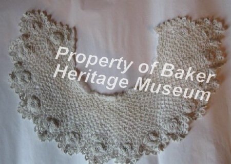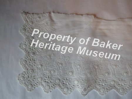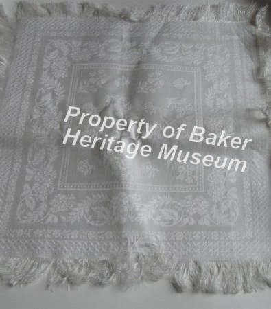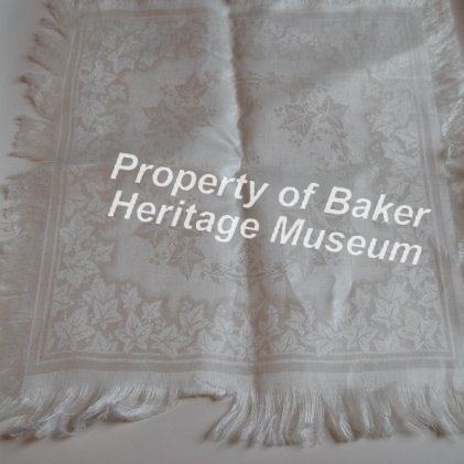 - Green velvet table scarf with 5" lace edging. One end is embroidered with hpink and rose flowers, the other with lace type appliqud white daisies. It won 1st prize at County Fair, Granville, N.D. 1905... View Full Record